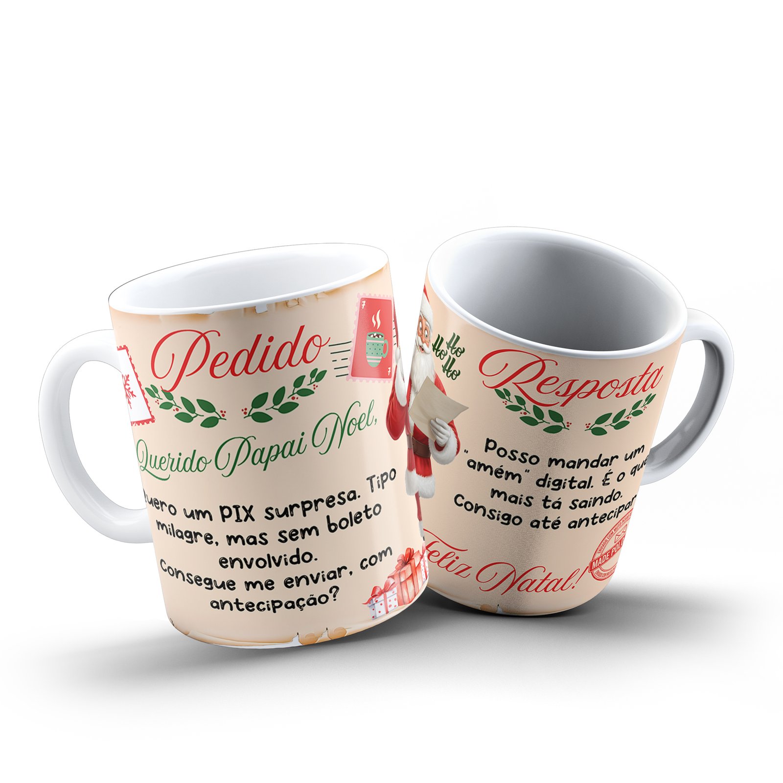 Caneca "Cartinhas ao Papai Noel" Edição Sarcástica! À vista no Pix: R$ 32,67