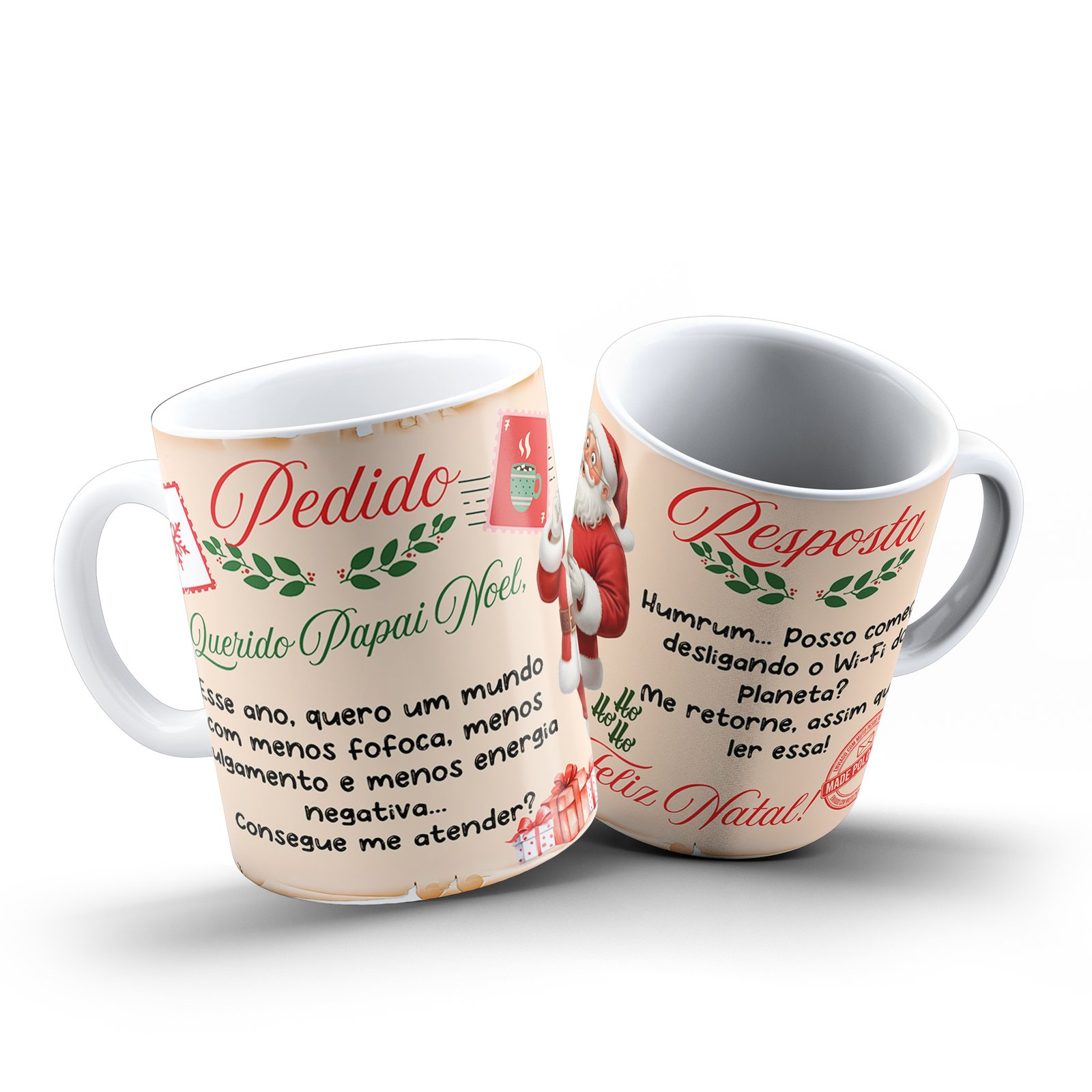 ☕ Detalhes do Produto – Caneca “Cartinhas ao Papai Noel” – Sarcástica!