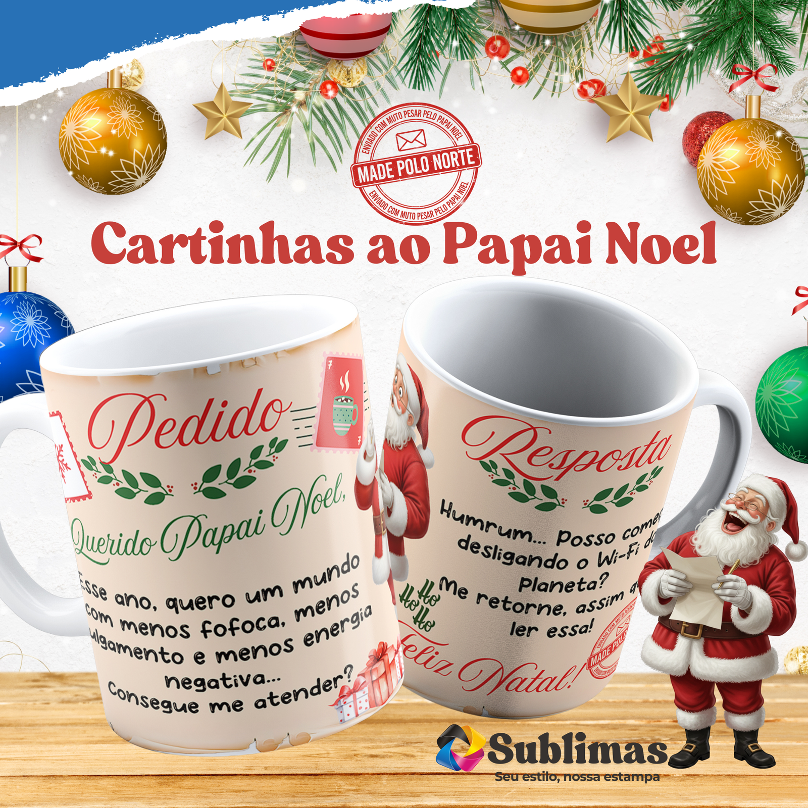 Caneca "Cartinhas ao Papai Noel" Edição Sarcástica! À vista no Pix: R$ 32,67