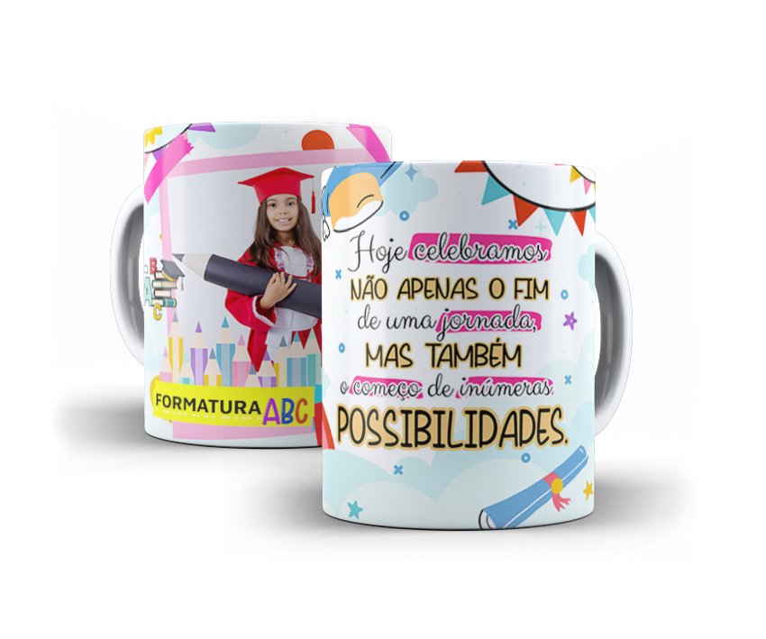 A Caneca Formatura ABC celebra o início da jornada escolar — os primeiros aprendizados, as primeiras letras e todo o orgulho dessa fase tão especial.