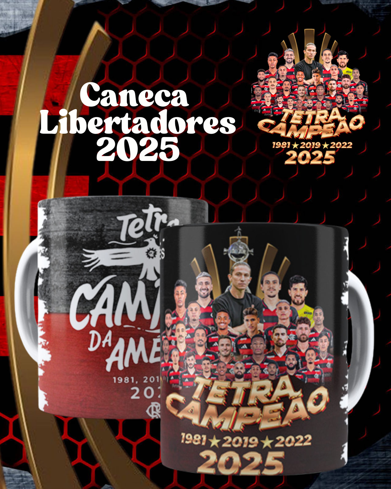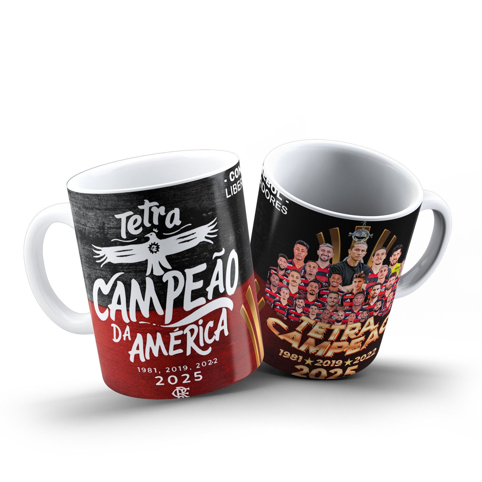 A Caneca Libertadores – Campeão 2025 homenageia a vitória histórica do seu time, marcada por raça, paixão e o orgulho de uma torcida que nunca abandona.