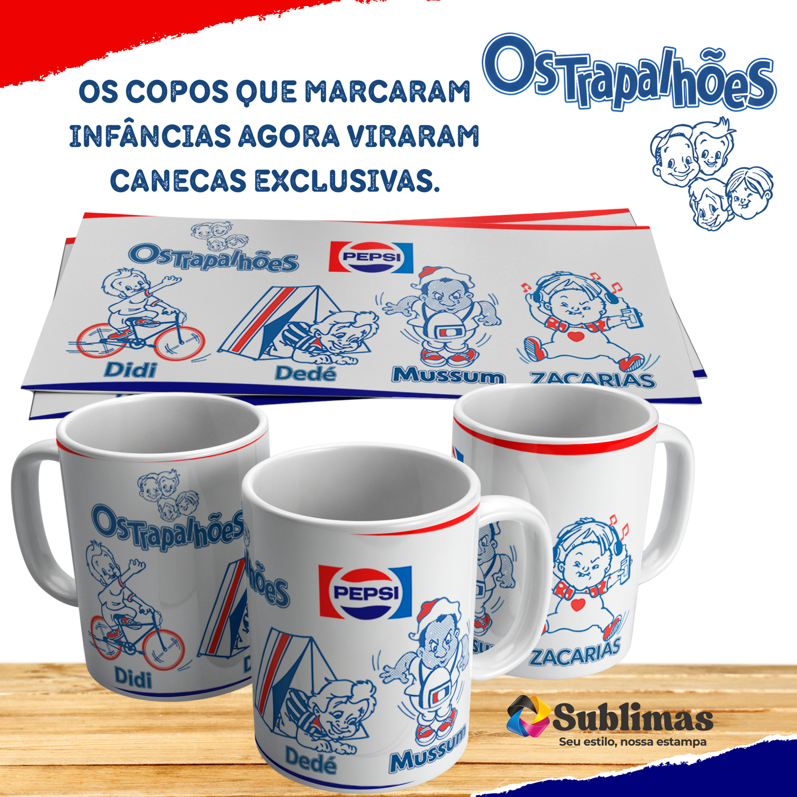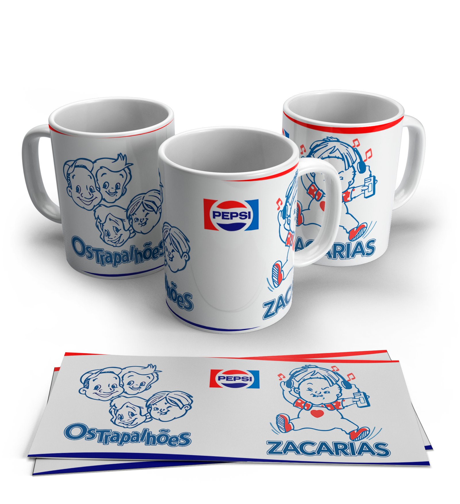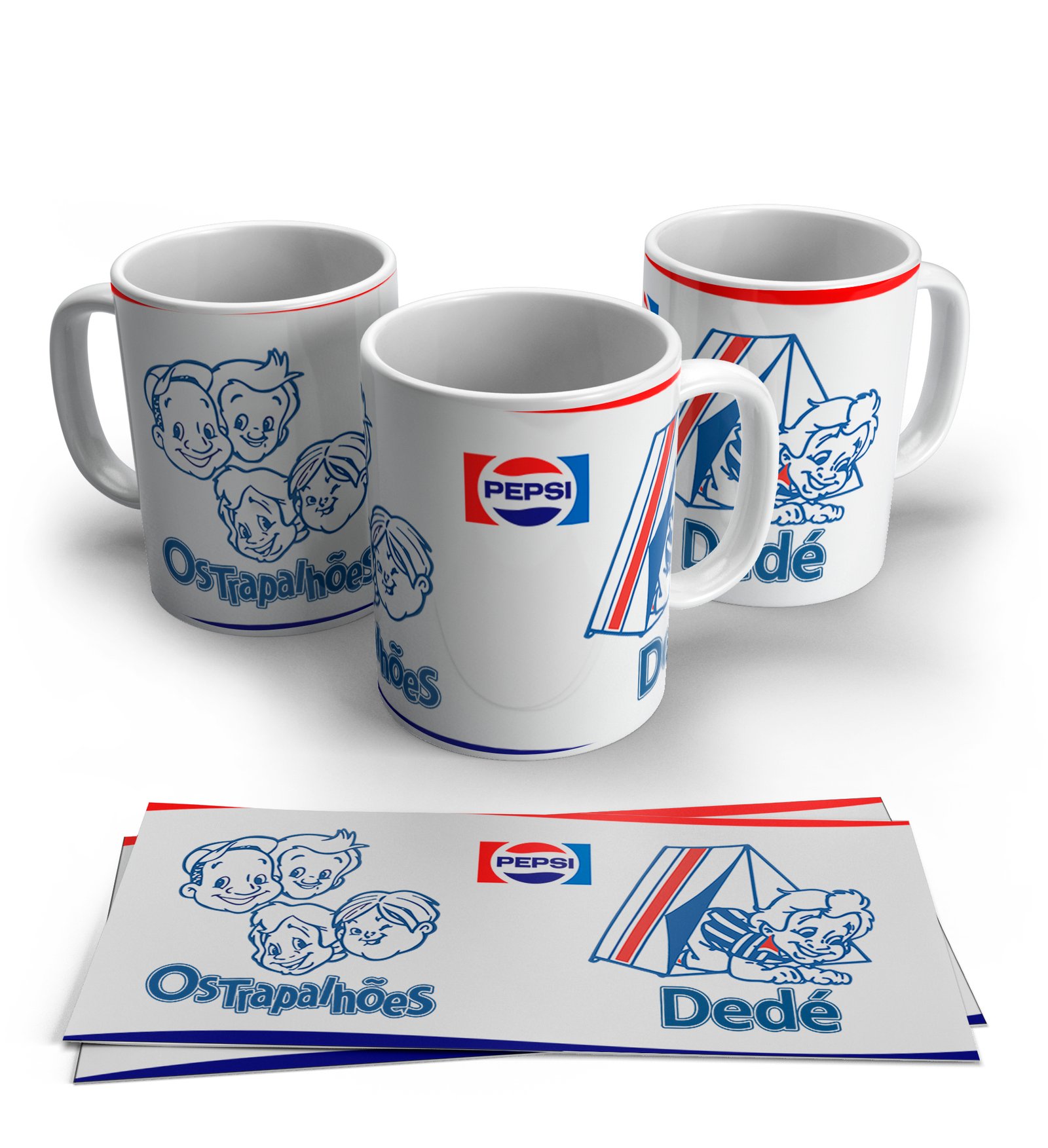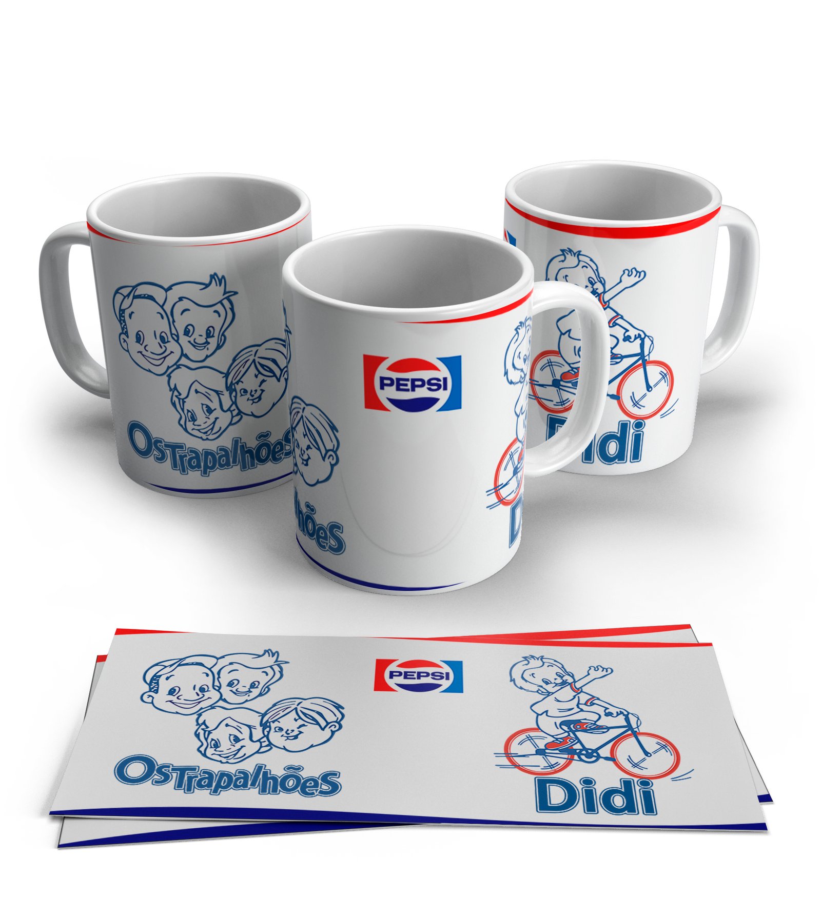 O Kit 05 Canecas reúne os personagens inesquecíveis do clássico programa Os Trapalhões: