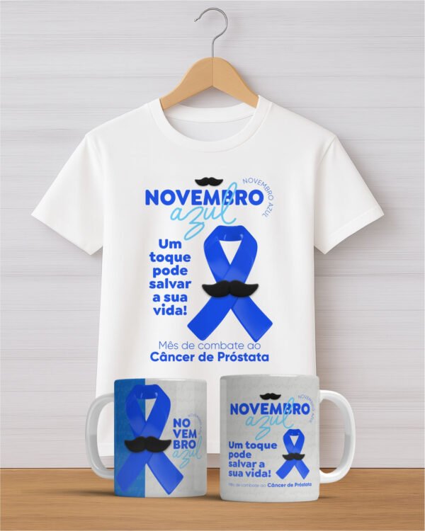 O Kit Novembro Azul reúne duas peças cheias de significado: uma camiseta unissex confortável e uma caneca em cerâmica de alta qualidade.