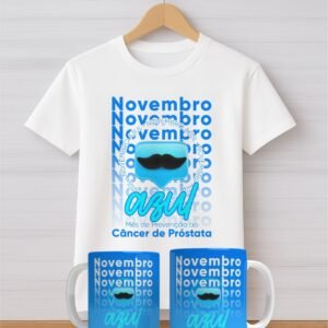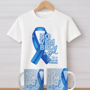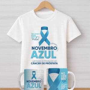 O Kit Novembro Azul reúne duas peças cheias de significado: uma camiseta unissex confortável e uma caneca em cerâmica de alta qualidade.