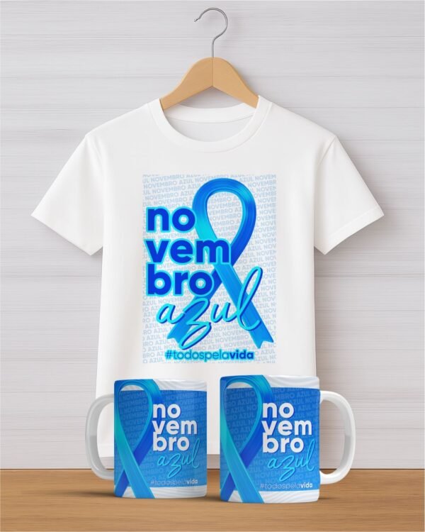 O Kit Novembro Azul reúne duas peças cheias de significado: uma camiseta unissex confortável e uma caneca em cerâmica de alta qualidade.