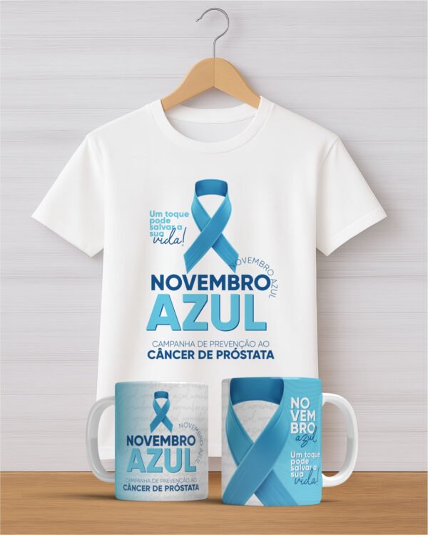 O Kit Novembro Azul reúne duas peças cheias de significado: uma camiseta unissex confortável e uma caneca em cerâmica de alta qualidade.