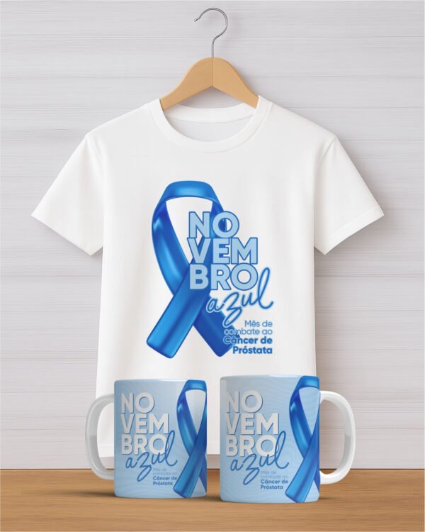 O Kit Novembro Azul reúne duas peças cheias de significado: uma camiseta unissex confortável e uma caneca em cerâmica de alta qualidade.