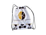 Material e tamanho: Mochila saco na cor branca, 43x32cm, leve e resistente — ideal para a rotina de treinos.