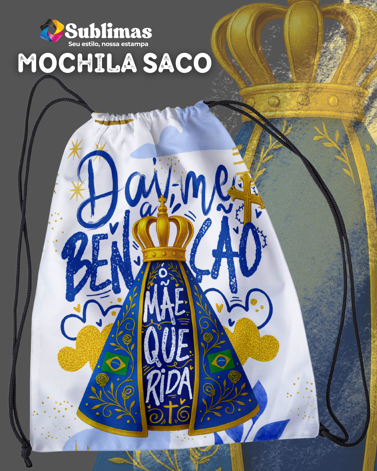 🎒 Detalhes do Produto – Mochila Saco Nossa Senhora para Sublimação