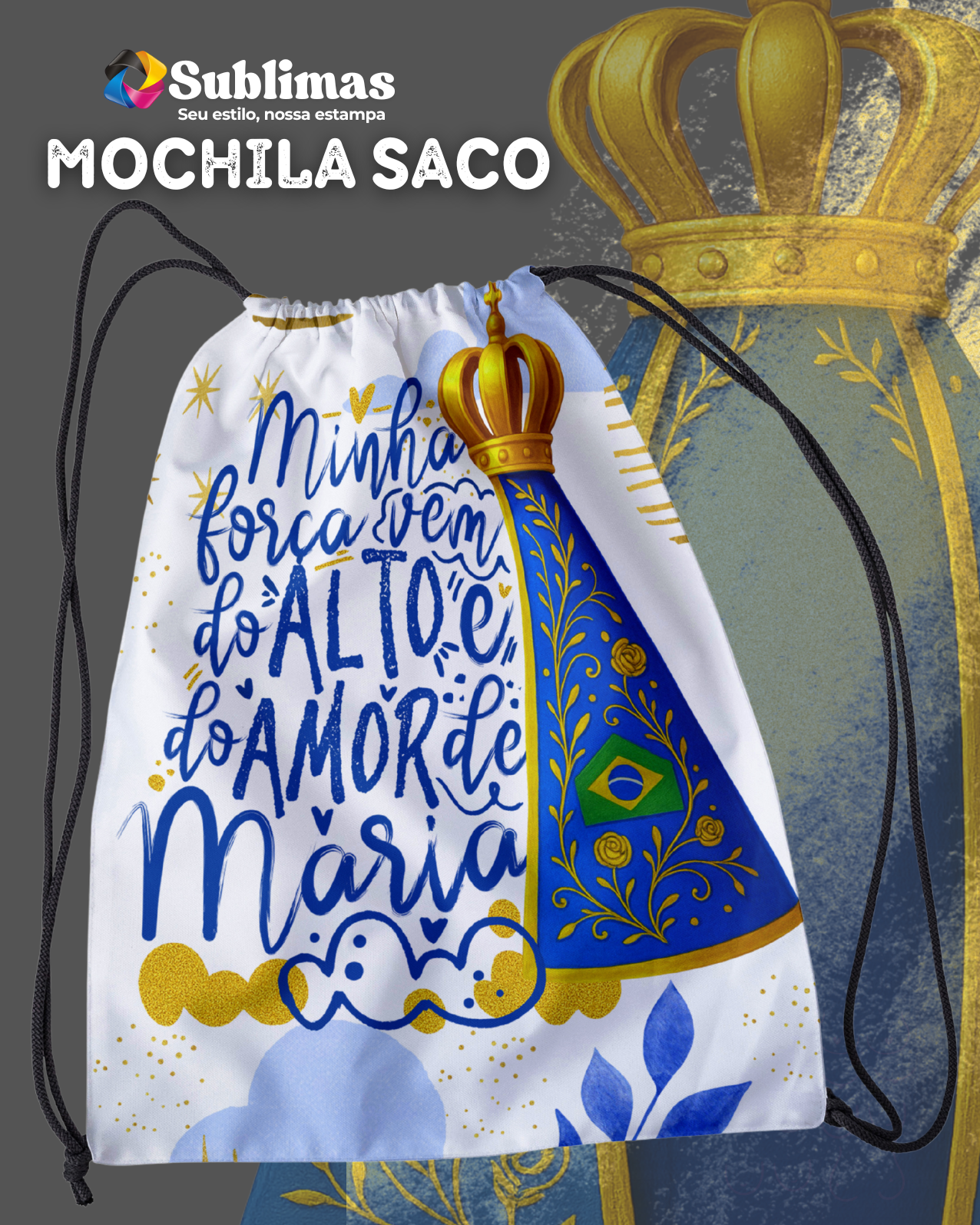 🎒 Detalhes do Produto – Mochila Saco Nossa Senhora para Sublimação